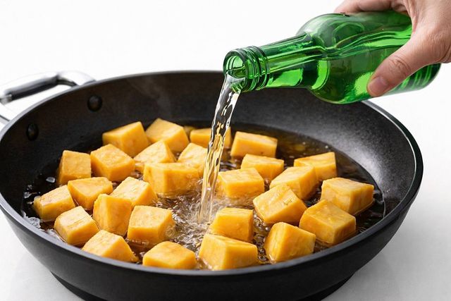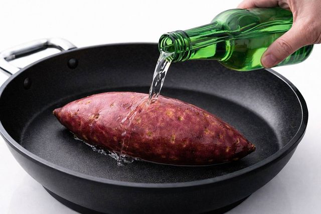 유튜브 채널 ‘집밥 korean home cooking’에는 “고구마에 소주를 부었더니 가족들이 오랜만에 집밥에 취했어요”라는 제목의 영상이 올라와 레시피가 소개됐다. 영상에서 유튜버는 “먼저 큰 고구마 한 개(300g) 껍질을 제거한다. 한 입 크기로 적당히 썰어준다. 프라이팬에 고구마 넣고, 물 한 컵(200ml), 소주 한 컵(200ml)을 넣고 중불에 뚜껑을 덮은 뒤 3~4분 정도 끓여준다”고 설명했다. 고구마가 살캉하게 익을 때까지 끓여주는데, 젓가락을 깊숙이 찔러 익음 정도를 확인하면 된다.
