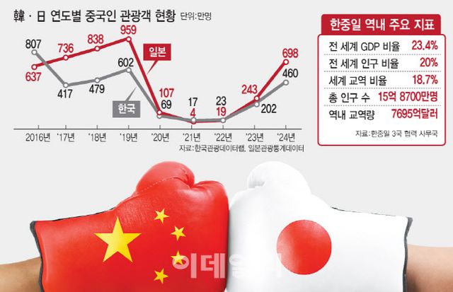 중일 갈등이 장기화 국면에 접어들면서 동아시아 관광 시장의 지형에도 큰 변화가 예상된다. 중국 내 반일 감정이 격화하면서 중국인 관광 수요의 ‘탈일본’이 가속화하고 있어서다. 이러한 양상은 이미 관광 지표에 뚜렷하게 반영되고 있다. 2025년 일본의 외래객은 연간 4270만 명을 넘어 사상 최대를 기록했지만, 같은 해 12월 중국발 방문객은 전년 동기 대비 45% 넘게 급감했다.