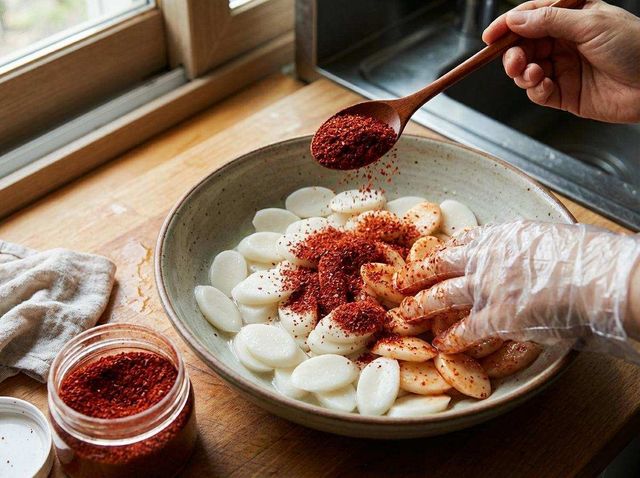 떡국떡에 고춧가루 입히기. 기사 내용 토대로 AI툴 활용해 제작한 자료사진.