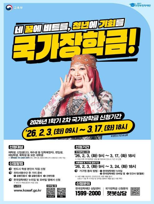 교육부와 한국장학재단은 2026학년도 1학기 국가장학금 2차 신청 접수를 2월 3일 오전 9시부터 시작해 3월 17일 오후 6시까지 진행하며 이번 2차 신청 기간에는 국가장학금뿐만 아니라 주거 안정 장학금과 국가근로장학금에 대한 통합 신청이 동시에 이루어진다. 2026년 1학기 장학금을 지원받을 수 있는 사실상의 마지막 기회로 신입생과 편입생 등 1차 신청 시기를 놓친 대상자들은 반드시 해당 기간 내에 절차를 완료해야 한다. 신청은 한국장학재단 누리집과 공식 모바일 애플리케이션을 통해 기간 중 24시간 내내 가능하지만, 마감일인 3월 17일에는 오후 6시에 접수 시스템이 자동으로 차단된다는 점을 유의해야 한다.