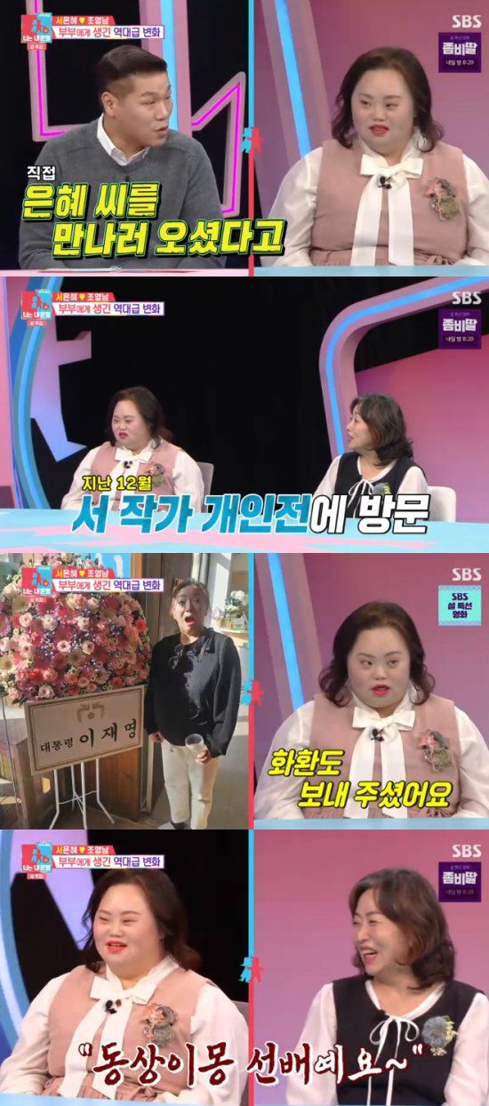 이날 서장훈은 서은혜의 변함없는 인가를 언급하면서 "영부인이 은혜 씨를 직접 만나러 가셨다고?"라면서 궁금해했다.