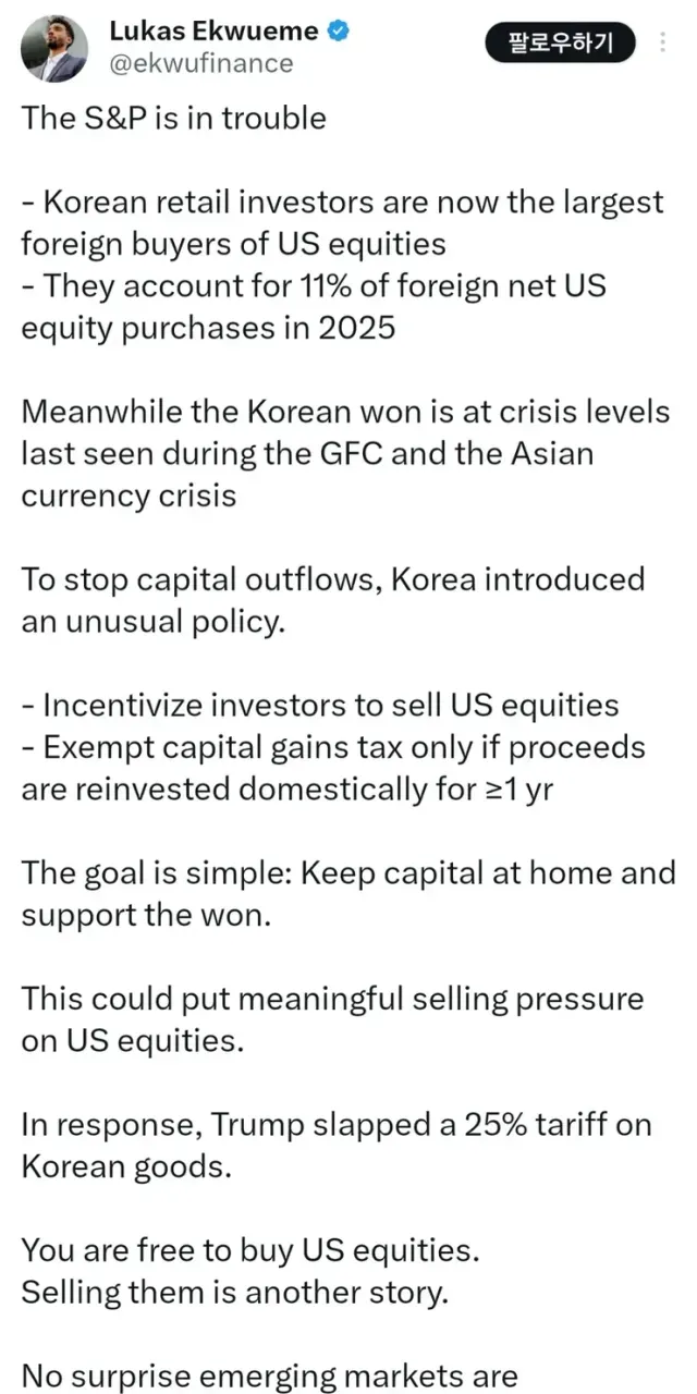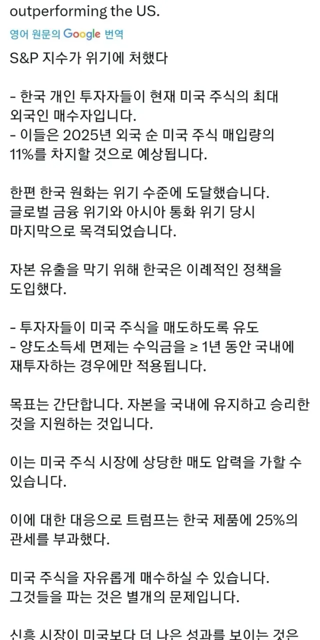 4. 이 돈이 다시 한국으로 돌아올 경우, 미국 주식에 여파를 줄 수 있음.