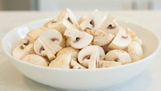 본격적인 조리는 '센 불'이 핵심이다. 팬을 충분히 달군 뒤 올리브 오일을 두르고 양송이버섯을 넣는다. 소금과 후추로 간을 한다. 버섯은 약 90%가 수분으로 이루어져 있어 중약불에서 볶으면 물이 나오면서 질척해지기 쉽다. 강한 불에서 빠르게 볶아, 나오는 수분이 곧바로 증발하도록 해야 한다. 이렇게 하면 버섯은 물에 삶아진 식감이 아니라 겉은 구워지고 속은 촉촉한 상태가 된다.