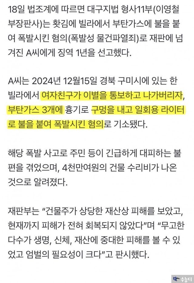 건물주가 상당한 피해를 보았으나, 피해가 전혀 회복되지 않았고