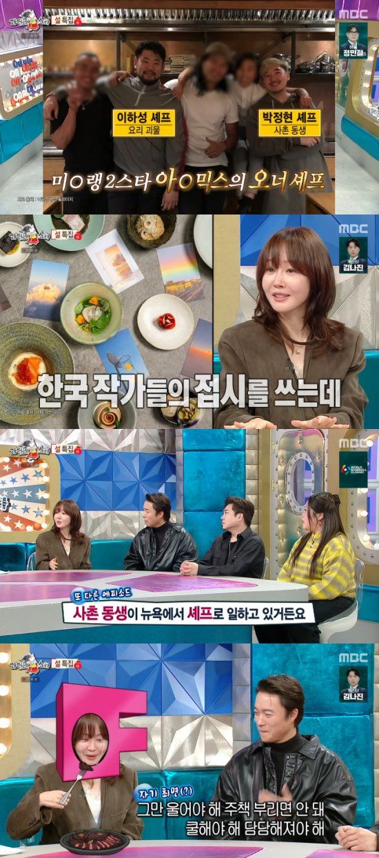 그리고 이날 엄지원은 자신의 사촌동생이 뉴욕에서 아주 유명한 식당의 셰프라면서 "사촌동생이 뉴욕에서 셰프로 일하고 있다. 미슐랭 2스타 오너 셰프"라고 말했다.