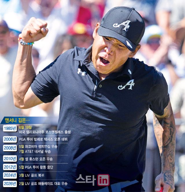 그에게 손을 내민 건 사우디아라비아 국부펀드(PIF) 자본으로 운영되는 리브(LIV) 골프다. 2024년 LIV 골프는 ‘와일드 카드’로 앤서니 김의 이름을 공개하면서 새로운 흥행카드로 내세웠다. 12년의 방황 끝에 복귀한 앤서니 김은 긴 공백의 벽을 실감했다. 두 시즌 동안 하위권을 전전한 끝에 시드를 잃었다. 하지만 포기하지 않았다. 올해 1월 열린 LIV 골프 프로모션에서 3위에 오르며 극적으로 출전권을 확보했다.