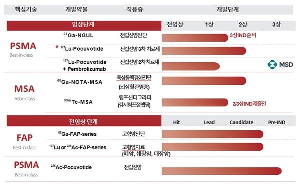 셀비온은 전립선암 치료제 외에도 이미 임상 1상을 완료한 3개의 신약 후보물질과 전임상 단계의 4개 파이프라인을 보유하고 있다. 진단제(Ga-68-NGUL) 시장으로 수직 계열화를 통해 진단과 치료가 동시에 진행하는 테라노스틱스 선두 주자로서 입지를 굳히겠다는 전략이 엿보인다.
