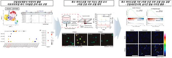 이어 젤라틴 기반의 특수 하이드로젤을 이용해 이 세포들이 생존할 수 있는 3차원 구조체를 제작했다. 이 모델은 산소 확산을 정밀하게 제어해 환자의 병변과 유사한 저산소 상태를 형성할 수 있도록 설계됐다. 여기에 아토피 피부염의 핵심 면역 자극 인자를 적용해 실제 질환과 유사한 염증·저산소 미세환경을 재현했다.