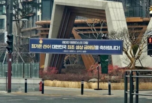 한국 설상 종목 사상 첫 올림픽 금메달의 주인공 최가온(세화여고)을 축하하기 위해 거주 단지에 내걸렸던 현수막이 조용히 사라졌다. "금수저 자랑하냐"는 식의 악성 민원이 잇따르면서 철거된 것으로 전해지자 온라인에서 논란이 일고 있다.