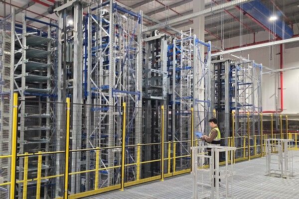 사우디GDC에는 멀티셔틀 시스템이 도입됐다. 높이 10m, 길이 60m 규모의 대형 선반 사이를 AGV(고정노선 운송로봇)가 오가며 자동으로 상품을 보관하거나 꺼내는 방식이다. 작업자가 직접 이동하지 않고 로봇이 상품을 운반하는 GTP(Goods-to-Person)형 자동화 시스템으로 다품종·소량 주문이 많은 이커머스 환경에 최적화됐다.