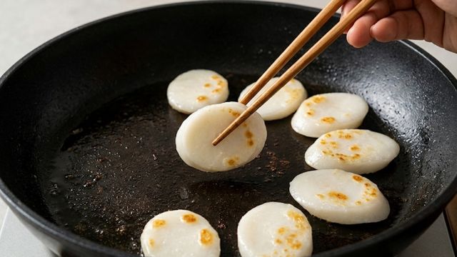 떡국떡을 프라이팬에 올린 모습 / 기사 내용을 바탕으로 제작한 AI 이미지