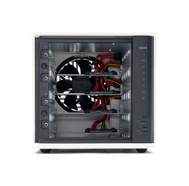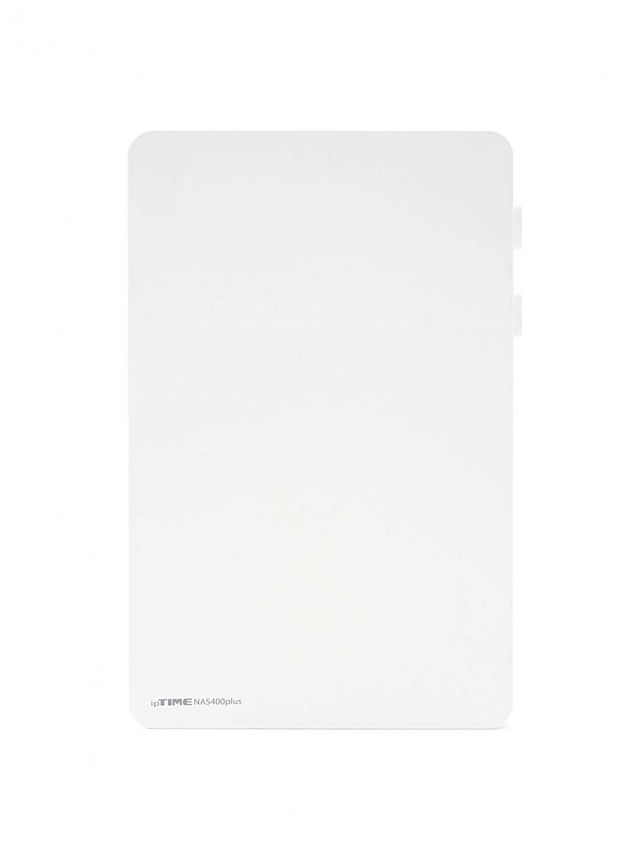 아이피타임 NAS400Plus는 4베이 NAS에서 흔히 보이는 투박한 외형을 놀라울 만큼 세련되게 디자인했다. 화이트 바디에 블랙 전면의 투톤 구성, 라운드 처리된 모서리만으로 완성한 전면 디자인은 애플 디바이스가 추구하는 미니멀리즘을 연상시킨다. NAS는 설치 후 전원과 네트워크가 상시 연결되고, 상태 LED가 계속 켜진 채로 구동된다. 결국 보이는 외형은 설치되고 사용되는 공간에 이질감 없이 자리 잡을 수 있는가의 문제가 된다. NAS400Plus는 거실 선반, 책상 위, 소형 사무 공간 같은 생활 동선에서도 부담 없게 깔끔함을 고수했다.