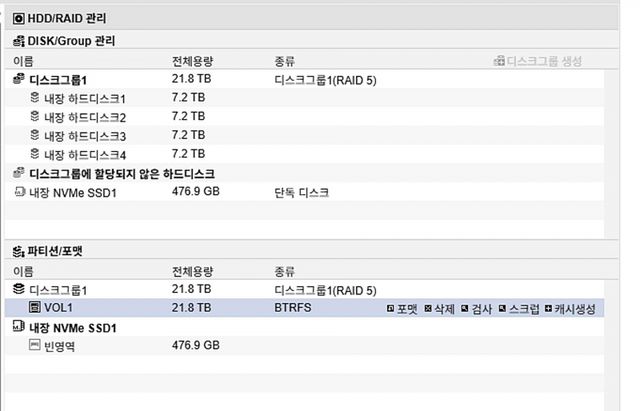 분류/구성 : NAS / 4베이 / HDD 미포함