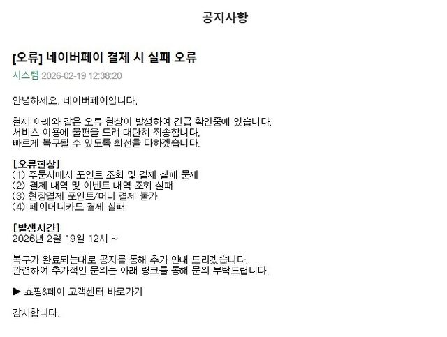네이버페이 오류 관련 공지사항 / 네이버페이