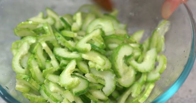 먼저 오이는 굵은소금으로 겉면을 문질러 씻은 뒤 0.3~0.5cm 두께로 썬다. 얇게 썰수록 양념이 빨리 배지만, 너무 얇으면 숨이 죽어 물러진다. 썬 오이에 소금을 약간 뿌려 10분 정도 절인다. 이 과정에서 수분이 빠지며 조직이 단단해진다. 이후 손으로 가볍게 짜 물기를 제거한다. 세게 비틀어 짜면 조직이 상해 아삭함이 떨어질 수 있다.