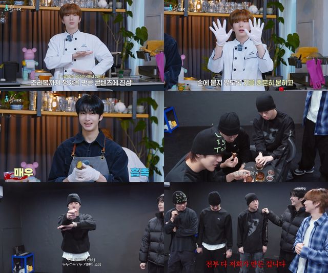 우여곡절 끝에 완성된 ‘두쫀쿠’를 들고 연습실로 향한 두 사람은 멤버들을 상대로 ‘시중 판매 제품 vs 수제 제품’ 블라인드 테스트를 진행했다. 하지만 여기에는 반전이 숨어 있었다. 사실 준비된 모든 쿠키가 기현과 형원이 직접 만든 것이었기 때문.