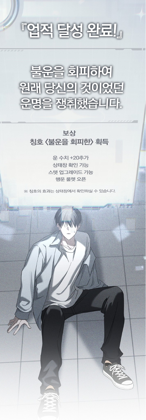 바닥에 주저앉은 유하의 시야 위로 투명한 알림창이