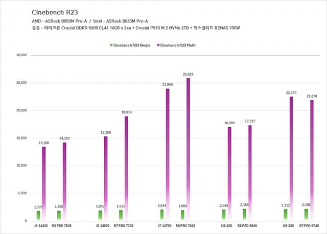 AMD Ryzen PRO 9645/9745와 인텔 Core Ultra 5 225/235은 하이엔드에 해당한다. 쟁점은 CPU 성능만큼 메모리 같은 주변 자원도 여유롭게 가져가야 더할 나위 없는 조합이 완성된다는 점이다. 다만 메모리 가격 상승 국면과 맞물린 만큼 비용 상승이 불가피하다. 하지만 2026년형 장기 운용을 전제로 신규 장비를 고민하고 있다면 Zen 5 기반 Ryzen PRO 9645/9745는 검토 가치가 있다.