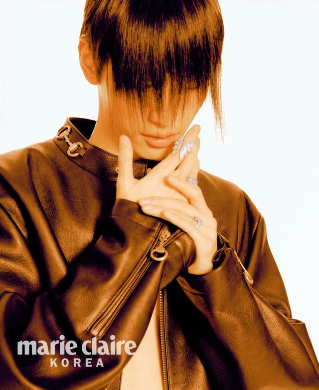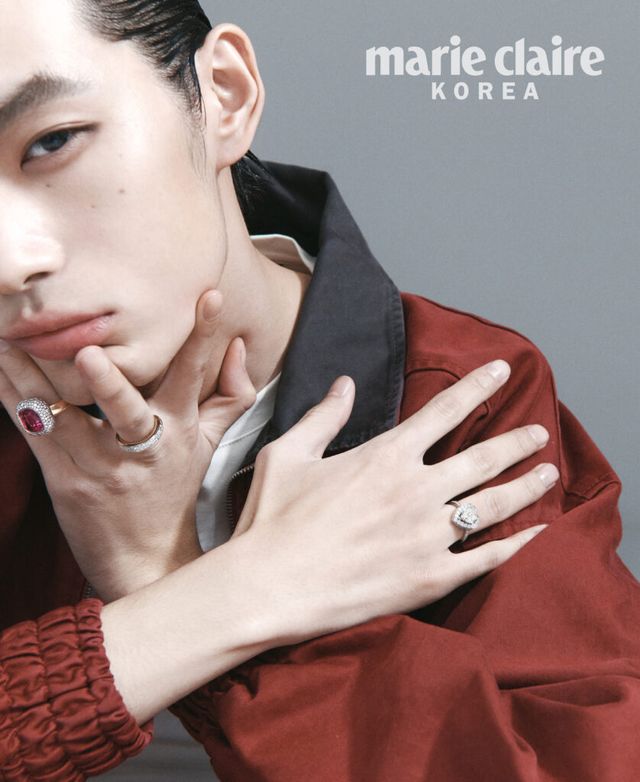 오른손 검지의 날개 모티프 다이아몬드 장식 마그니피센트 링, 약지의 마그니피센트 브라이덜 솔리테어 링, 네스팅 링 모두