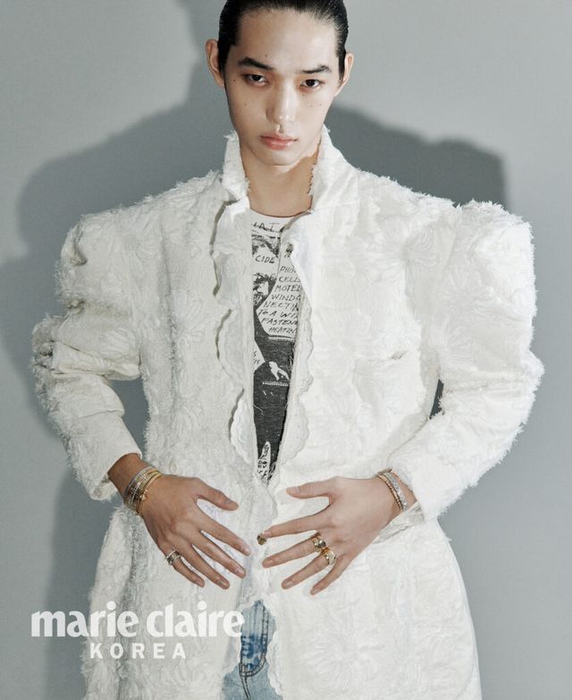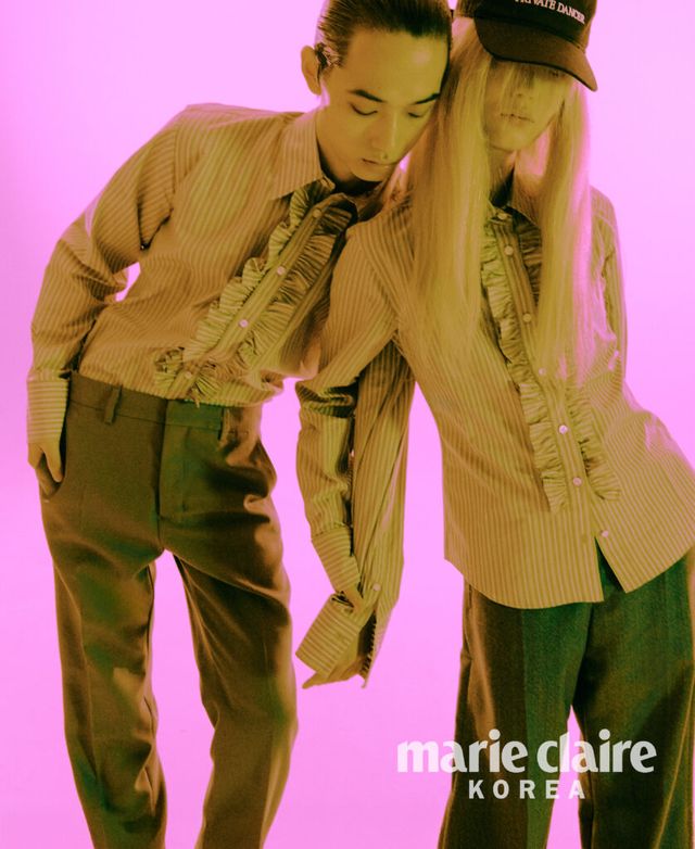 헝웨이가 입은 러플 셔츠, 팬츠 모두