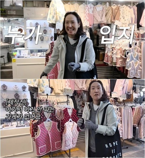 시장 메인 거리를 걷던 중 제작진이 꽃무늬 누빔 조끼를 가리키며 의견을 묻자 강주은은 최근 연예인들 사이에서 화제가 된 이른바 ‘김장조끼’를 바라보며 “유행이냐? 누구에게 유행인데?”라고 되물었다. 이어 “근데 누가 입지?”라고 말했다.