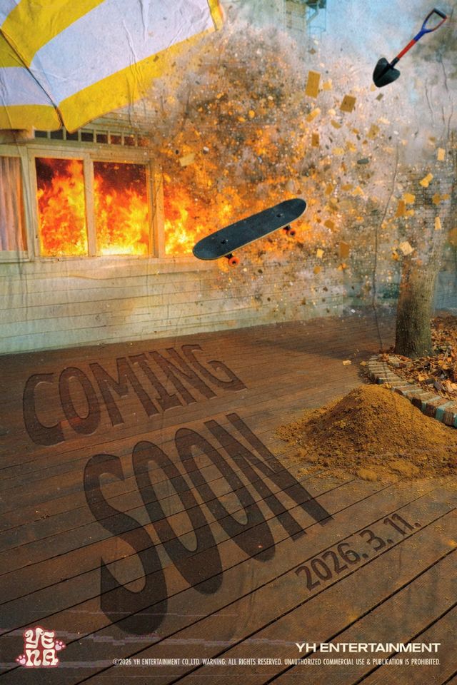 최예나는 23일 0시 공식 SNS를 통해 커밍순 이미지를 공개하며 오는 3월 11일 컴백을 공식화했다. 이미지에는 화염에 휩싸인 건물과 재로 사라져 가는 나무가 등장해 강렬한 분위기를 자아냈다. 그 위로 스케이트보드와 삽 등이 공중에 날아가는 듯한 요소가 더해져 폭발적인 긴장감과 극적인 장면을 완성했다.