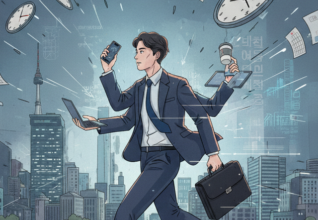 한국인들은 항상 시간 압박에 시달리는데 그중에서도 대도시에 사는 직장인이 대표적이다. <그래픽=제미나이 AI 생성>