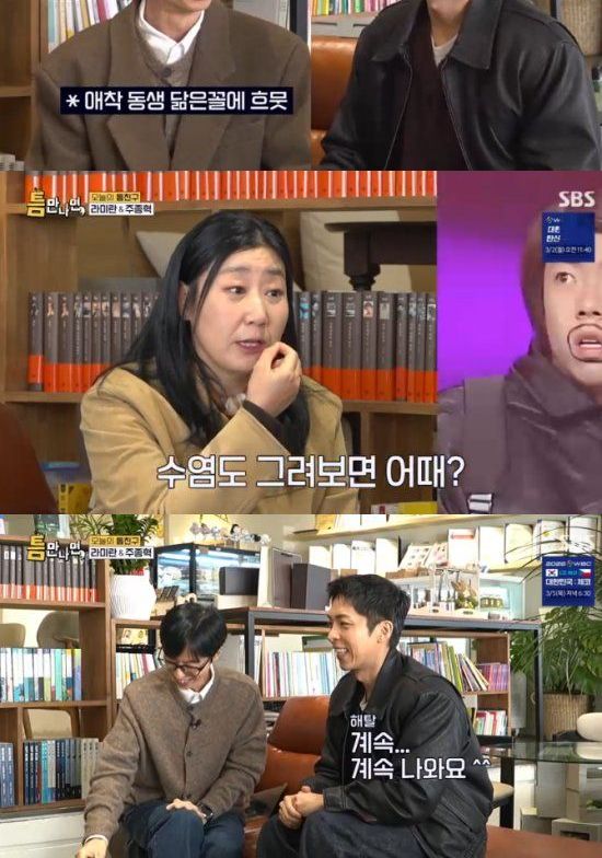 24일 방송된 SBS 예능 프로그램 '틈만 나면, 시즌4'에서는 '틈 친구'로 배우 라미란, 주종혁이 출연해 유재석, 유연석과 함께 파주를 찾아 '틈 주인'에게 행운을 선물했다.