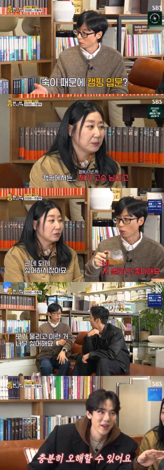 라미란은 "제가 숙이를 꼬신거다. 숙이가 4년동안 제가 캠핑을 하는 곳에서 먹고 자면서 따라 다녔다. 그러다보니 재밌다고 하더라. 이제는 숙이가 캠핑 유튜버가 되지 않았냐"고 뿌듯해했다.