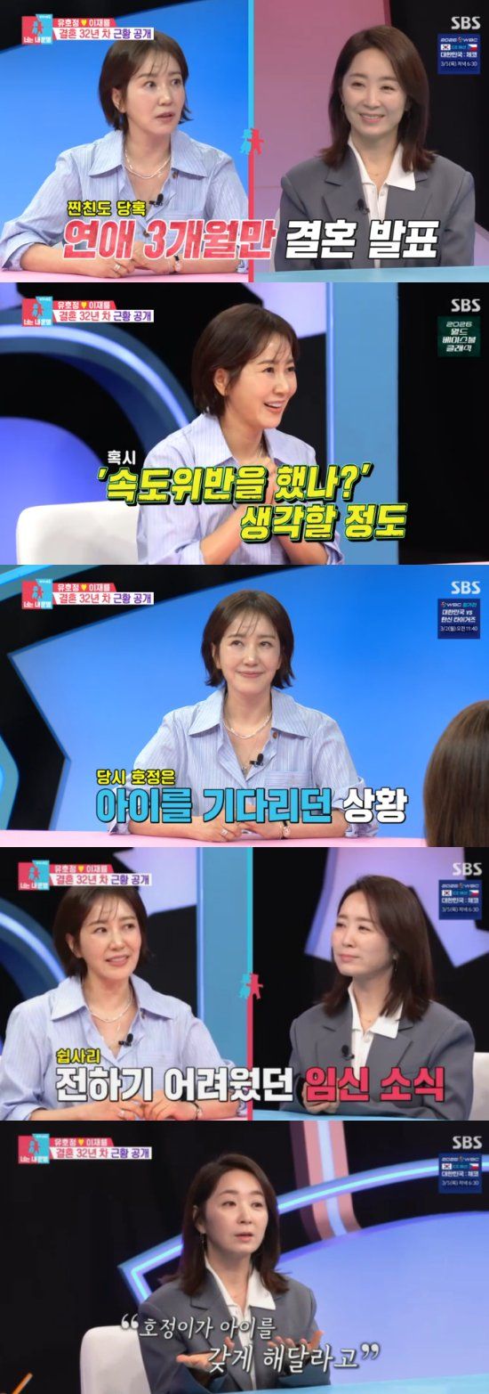 이에 윤유선은 "그 때 호정이는 아이를 너무너무 기다리는 상황이었고, 저는 결혼을 하자마자 아이가 생겼다. 그래서 정말 매일매일 '호정이에게 아이가 생기게 해달라'고 기도를 했다. 그리고 6개월 뒤에 아기가 생겼다"면서 웃었다.