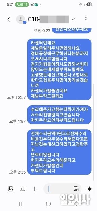 이어 “부품비를 결제하면 모두 수리해 돌려주겠다고도 했지만, 이미 신뢰가 깨진 상황에서 해당 업체에 맡기고 싶지 않다”며 “시동 불능된 뒤 제 차를 어떻게 하지는 않을지 의심이 들어 열쇠도 챙겨왔다”고 강조했다.