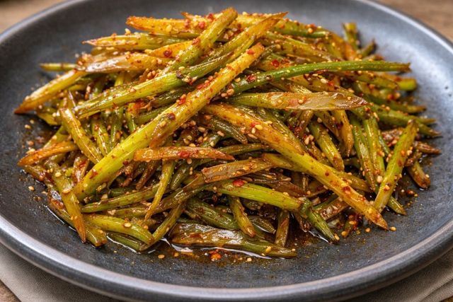 마늘쫑 볶음 완성. 기사 내용 토대로 AI툴 활용해 제작한 자료사진.