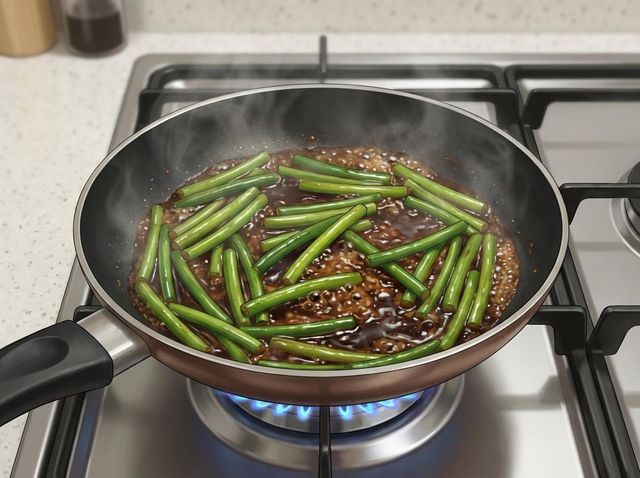 팬에 들기름 2큰술을 두르고 중불에서 마늘쫑을 1분 정도 가볍게 볶는다. 식용유를 섞지 않고 들기름만 사용해도 된다. 들기름은 가열 시 특유의 고소한 향이 빠르게 올라온다. 이 단계에서 과하게 볶지 않는 것이 중요하다. 색이 완전히 변하기 전까지만 향을 입히는 것이 핵심이다.