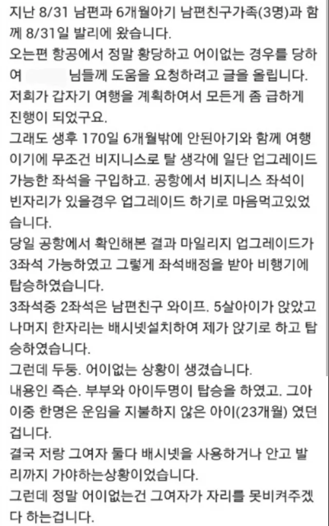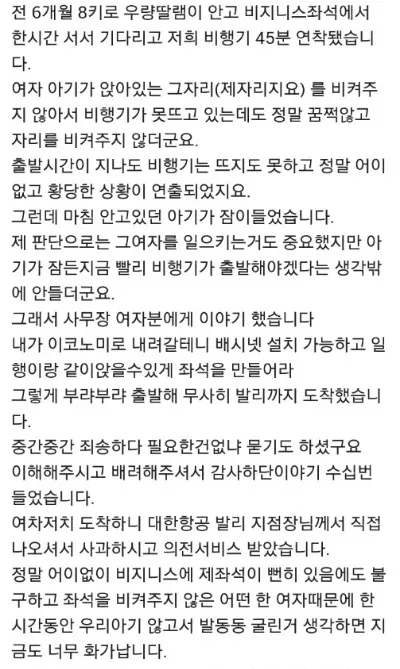 2. 6개월 아기 엄마의 비즈니스석 자리에 모르는 23개월 아이가