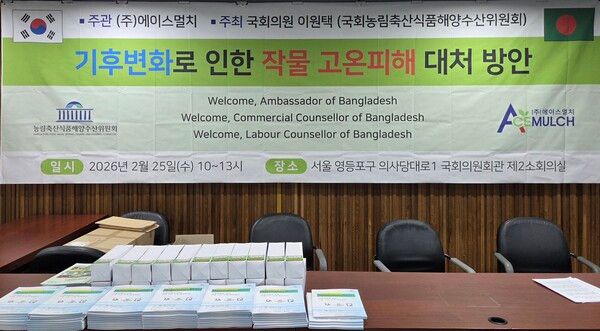 국회 농림축산식품해양수산위원회 소속 이원택 국회의원이 주관하고, 디앤더블유그룹, (주)에이스 멀치, (주)무궁무진이 공동 주최하는 ‘기후변화로 인한 작물 고온 피해 대처방안 세미나’가 100여명의 농축산관계자들이 참석한 가운데 2월 25일 오전10시 국회의원회관 소회의실에서 개최되었다.