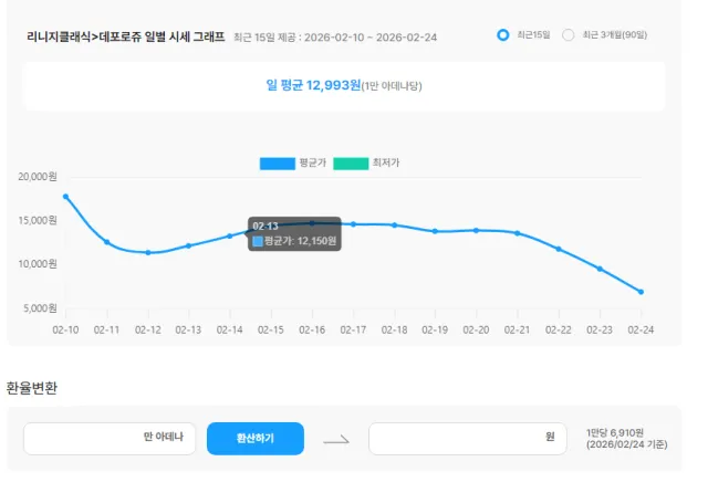 이미 데포섭 이하 서버들은 1만당 5천 이하 시세도 흔히 볼수 있음