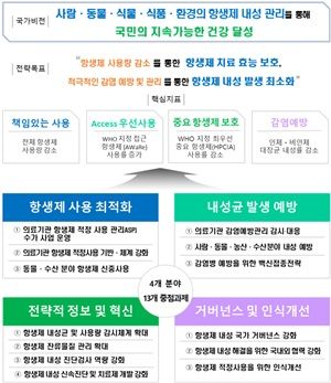 이번 대책의 국가 비전은 ‘사람·동물·식물·식품·환경의 항생제 내성 관리를 통해 국민의 지속 가능한 건강을 달성한다’이다.