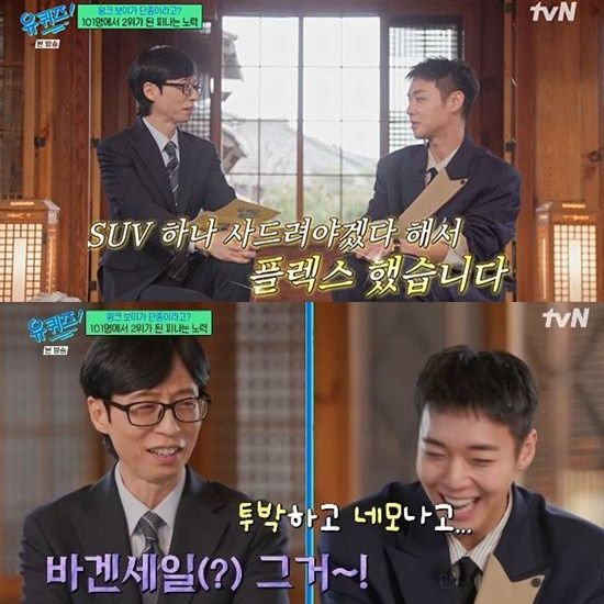(엑스포츠뉴스 조혜진 기자) '유퀴즈'에서 박지훈이 아버지에게 통 큰 효도를 했던 일화를 밝혔다.