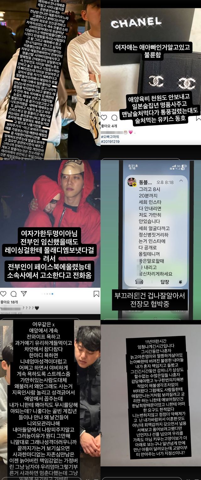 또한 A씨는 결혼 생활 당시 동호의 외도가 이혼의 결정적 사유였다고 주장했다. 더불어 양육비를 지급하지 않았으며, 다른 여성에게 명품 선물을 했다는 취지의 글을 올렸다. 이와 함께 특정 SNS 게시물로 보이는 사진을 첨부하며 의혹을 제기했다.