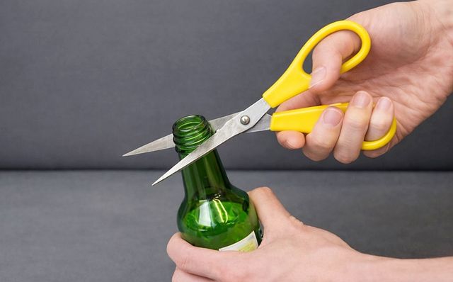 방법은 생각보다 간단하다. 먼저 내용물을 모두 비우고 깨끗이 헹군 소주병을 준비한다. 병에 물기가 남아 있지 않도록 마른 상태로 두는 것이 좋다. 한 손으로 소주병 몸통을 단단히 잡고 다른 손에는 무뎌진 가위를 쥔다.