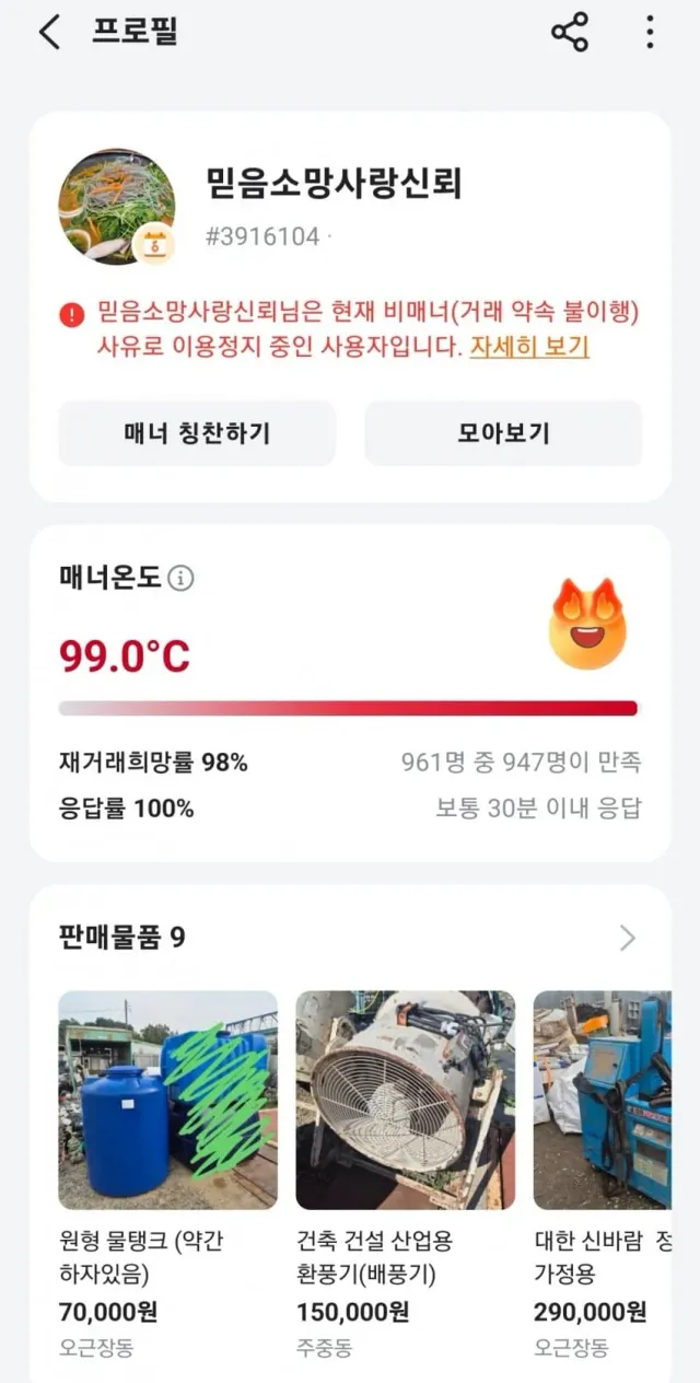친절하고 매너있어서 99도가 아니라 하루종일 거래를 완전해서 저런거임