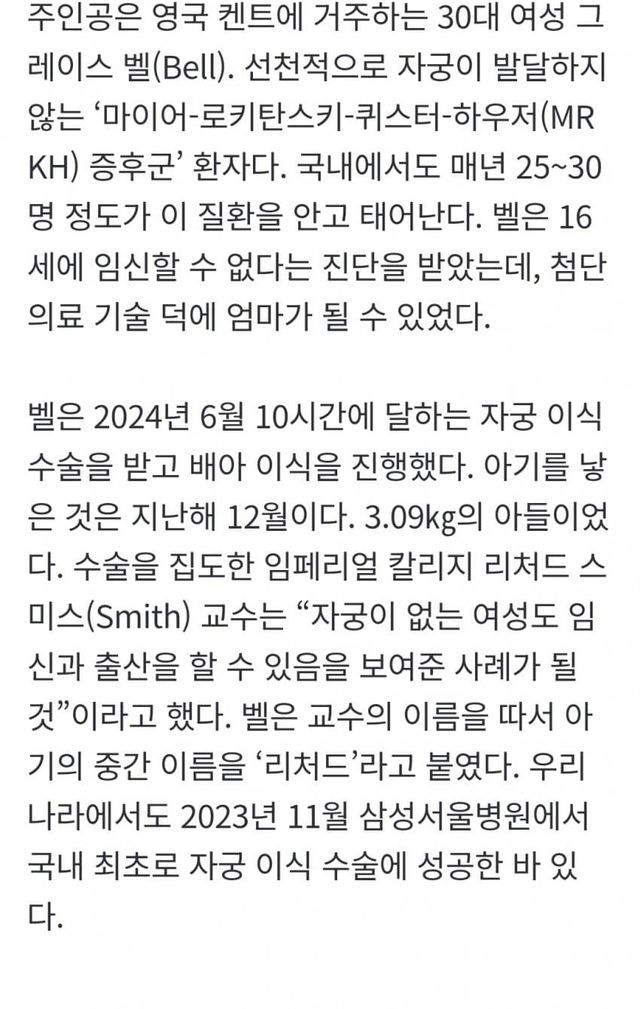 이식까지는 됐었는데 출산까지 한 건 최초라고 함