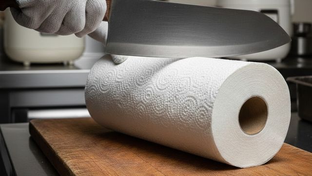 키친타월을 반으로 자르려는 모습. AI가 생성한 자료사진.