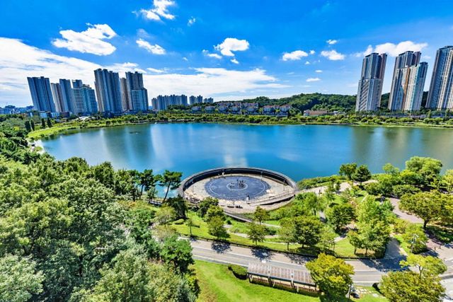 공원 곳곳에는 각기 다른 테마를 가진 공간이 배치돼 방문객에게 다채로운 경험을 선사한다. 바닥분수인 ‘신비한 물너미’와 ‘물보석 분수’를 포함해 9개의 분수 시설이 마련돼 여름철 시원한 볼거리를 제공하고, 총 6.5km에 달하는 순환 보행로는 산책을 즐기기에 안성맞춤이다. 수변 위에 떠 있는 5개의 원형 데크와 아치형의 ‘정다운 다리’는 호수와 숲이 어우러진 이색적인 경관을 연출한다. 습지와 버드나무가 어우러진 먼섬숲, 계절마다 꽃이 피는 행복한 꽃섬 등은 도심 한가운데서도 자연의 계절감을 오롯이 느끼게 한다.