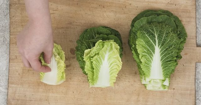 봄동은 일반 배추와 달리 납작하게 퍼져 자라는 것이 특징이다. 잎이 겹겹이 안으로 모이지 않고 바깥으로 활짝 펼쳐져 있어 자를 때 결을 이해하는 것이 중요하다. 먼저 밑동을 중심으로 손질한다. 칼을 이용해 밑동을 1~2cm 정도 도려내듯 잘라내면 잎이 자연스럽게 분리된다. 이때 한 번에 통째로 반을 가르기보다, 필요한 만큼 잎을 한 장씩 떼어내는 방식이 신선도 유지에 유리하다.