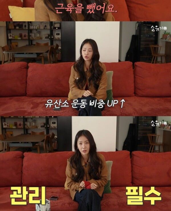 68kg 당시에는 스스로 수치심을 느껴 사실을 밝히지 못했다는 소유는 정체기를 극복한 방법도 공유했다. 작년 4월 체중이 50kg대 중반에서 더 이상 내려가지 않자 고민 끝에 근육량을 줄이는 방식을 택했다는 것이다. 소유는 유산소 운동 비중을 높여 근육을 걷어내기 시작하자 몸무게가 다시 감소하기 시작했다며 자신만의 운동 루틴을 설명했다.