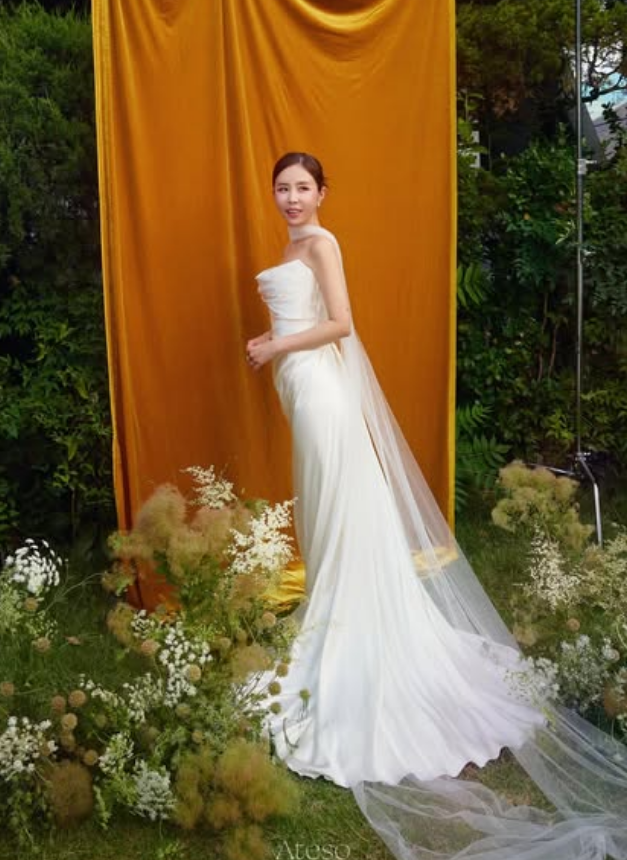 공개된 화보 속 신지는 먼저 고전적이면서도 세련된 오프숄더 스타일의 웨딩드레스를 선택해 예비 신부의 우아함을 극대화했다. 쇄골 라인이 시원하게 드러나는 디자인은 신지가 꾸준한 자기관리로 가꾼 탄탄한 어깨라인과 가녀린 목선을 더욱 돋보이게 했다.