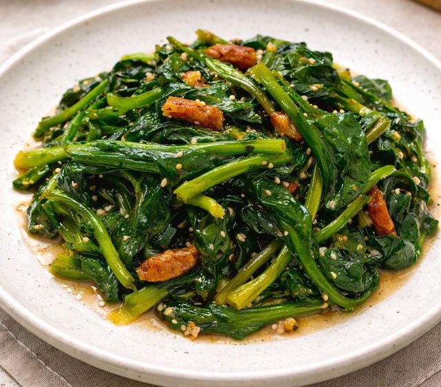 이렇게 완성된 시금치 볶음은 흰 쌀밥 위에 얹어 먹으면 그야말로 밥 한 공기가 순식간에 사라진다. 쌀국수나 볶음밥과 곁들여도 잘 어울리고, 맥주 안주로도 손색이 없다.