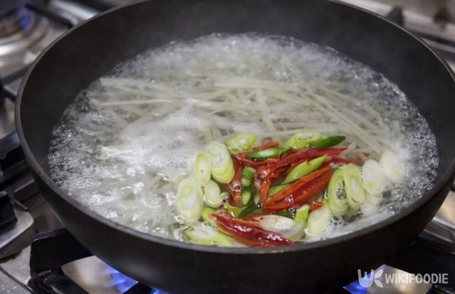 3. 냄비에 물 1.5리터를 붓고 팔팔 끓인다.