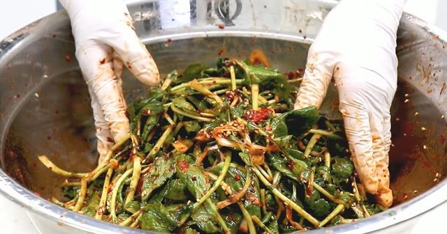 조리의 기본은 데치기다. 끓는 물에 소금을 약간 넣고 손질한 유채를 넣는다. 줄기 부분부터 먼저 잠기게 하고, 잎은 나중에 넣어 30초에서 1분 이내로 짧게 데친다. 너무 오래 익히면 색이 탁해지고 질감이 무른다. 데친 뒤에는 곧바로 찬물에 헹궈 열을 식히고, 물기를 꼭 짜야 한다. 이 과정이 제대로 되어야 양념이 겉돌지 않는다.